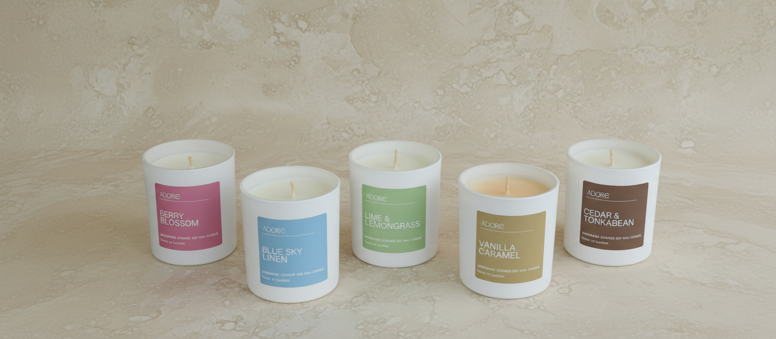 At Adore we create long lasting luxury scents made for you. Indulge in candles designed to awaken your senses, calm your mind, and elevate your space. Each blend creates a peaceful sanctuary through the power of scent.